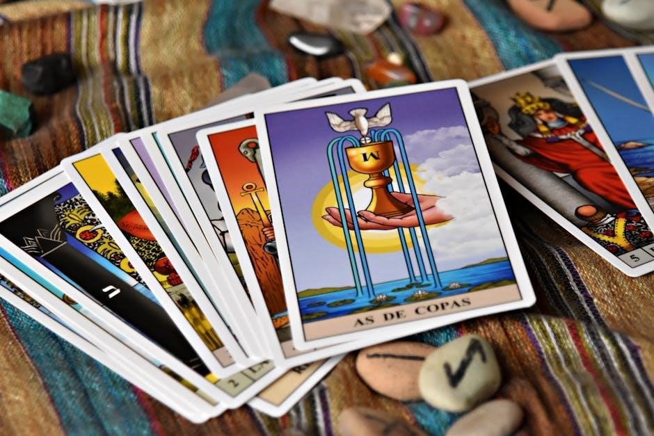 As a “divination game,” Pot Tarot encourages participants to “dive into cannabis-themed readings,” fostering an interactive experience․ Every card draw and spread forms a play within this spiritual game, where users actively seek answers, reflection, and foresight․ Its designation as a “78-card divination game” highlights the systematic approach to unlocking wisdom․ It promotes active engagement with the cards to uncover personal truths․ This playful format, combined with the comprehensive PDF instructions, positions Pot Tarot as an enjoyable and profound tool for self-discovery, illuminating the divination journey for its players․